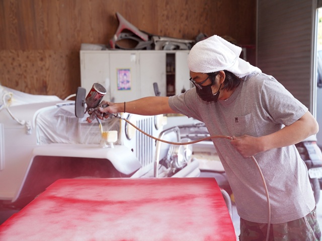 鈑金塗装の作業を、20年以上の経験豊富な一人の職人が修理をしております。